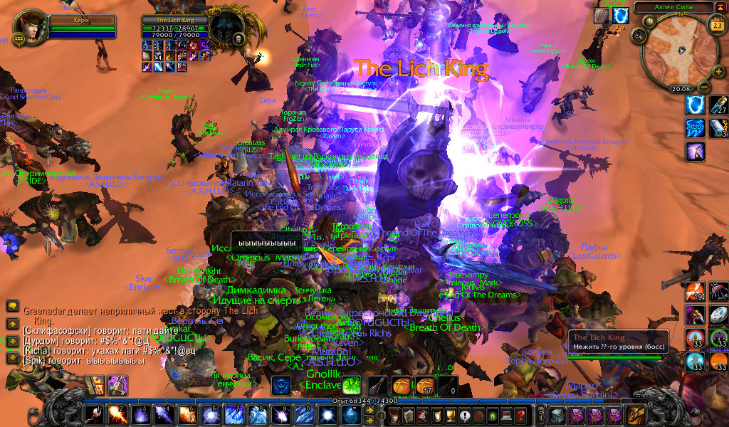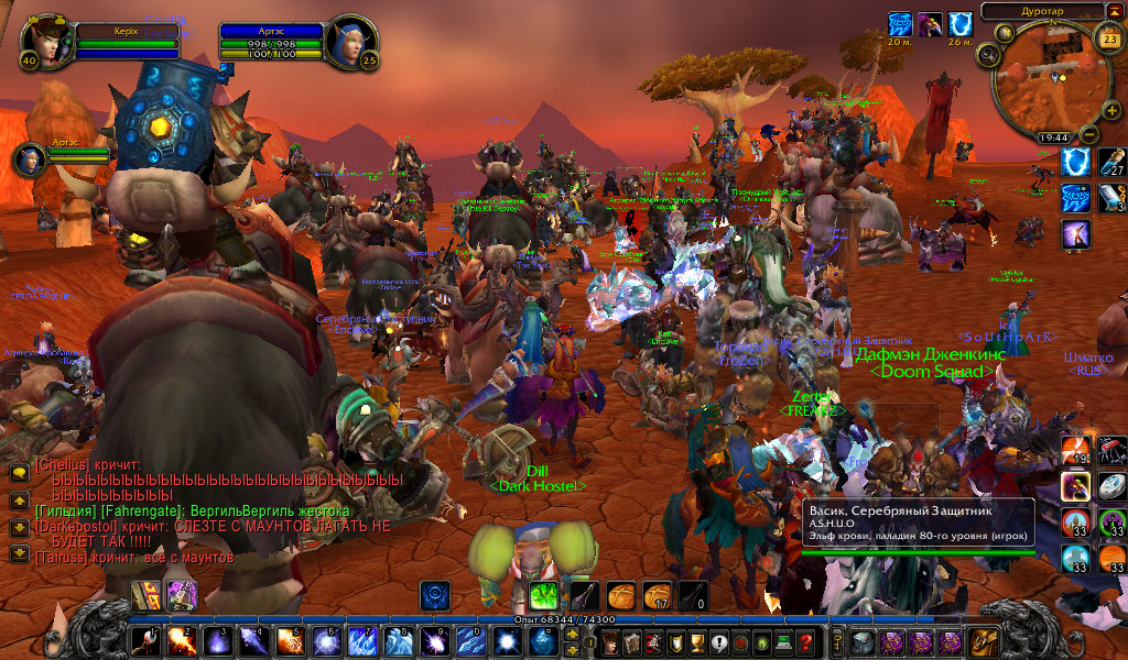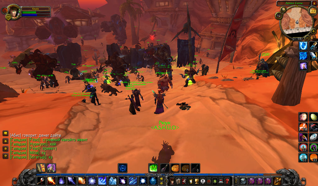 | ДЛЯ ТЕХ КОГО НЕ БЫЛО: Поздравляю с праздником! Сегодня состоялось нападение Лича на Оргримар! Было слишком много онлайн, и поэтому было очень неудобно убивать Лича! (фото+) После "диска" ГМ решил подарить всем подарки: например: бум. самолетики, спутники с Blizzcon 2009, перевоплощение в Огра, прислужник Тигр и т. д.